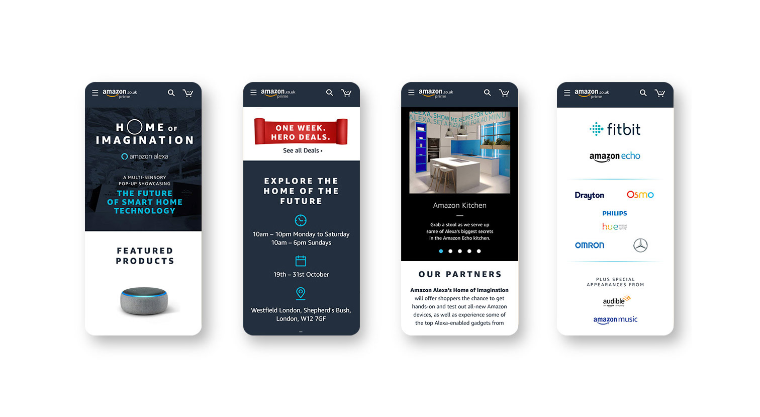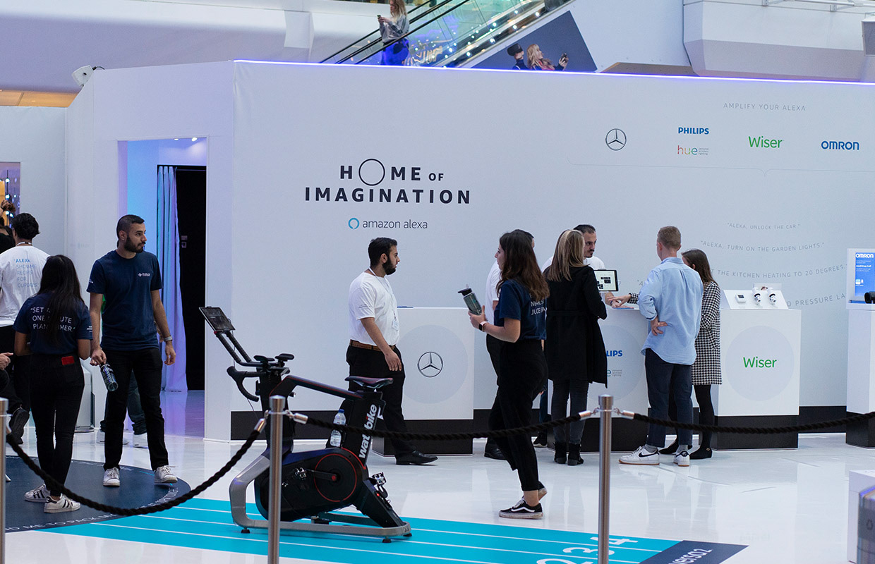 Brand activation at Westfield Shopping Centre in London, UK. offering shoppers the chance to get hands-on and test out all-new Amazon devices, as well as experience some of the top Alexa-enabled gadgets. Total visitors surpassed benchmark by 325%.