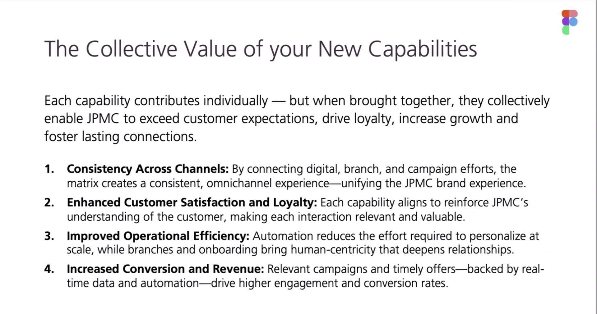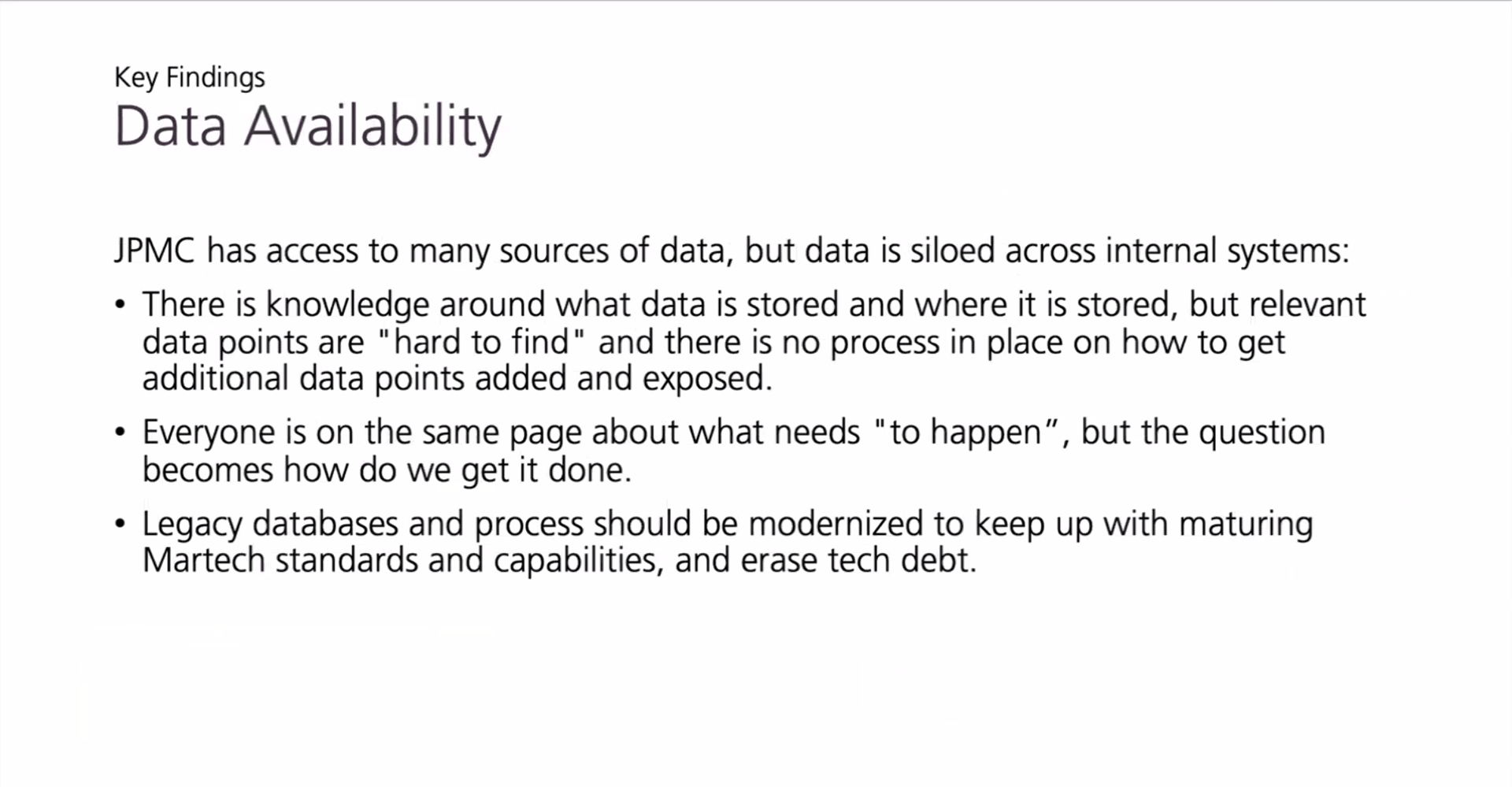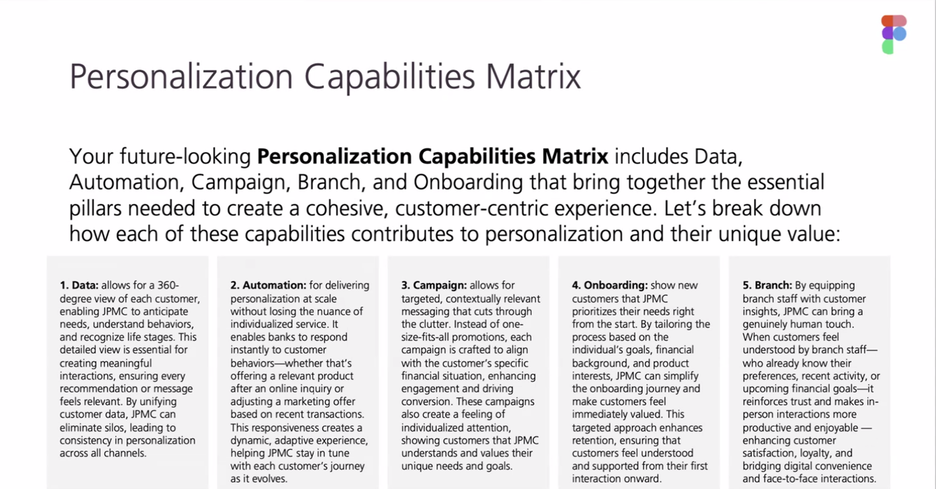 Together with 15 SMEs across Data, Product, Operations, Marketing , we defined what target state architecture can mean for the branch marketing and servicing experience at JP Morgan Chase.
