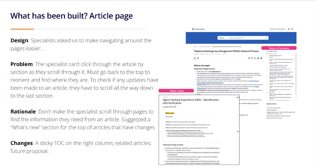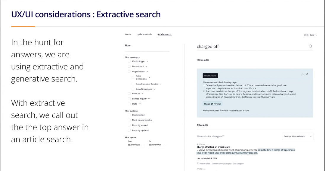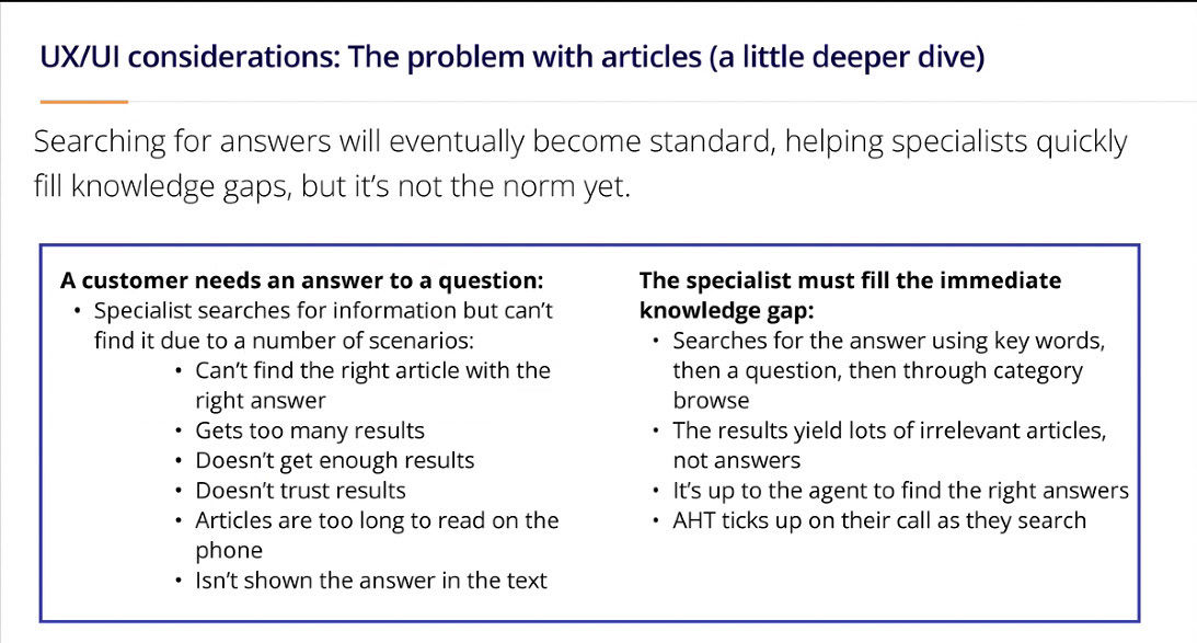 Call Center Specialists struggled to find the right information quickly, leading to inconsistent service and longer calls. We unified our knowledge platforms and reimagined search with an answer-first approach, ensuring specialists can deliver accurate, timely responses. This transformation has accelerate onboarding, improved operational efficiency, and elevated the customer experience.
