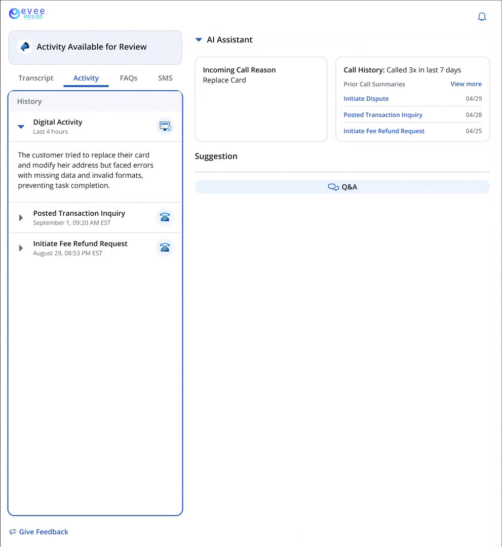 Our customers expect fast, seamless support. Previously, Chase customers faced long calls, repeating their issues to multiple servicing specialists, eroding trust and overall satisfaction. By integrating AI-powered call summaries and digital activity insights, we've empowered servicing specialists to resolve issues on the first contact - reducing handle times, minimizing transfers, and driving measurable gains in operational efficiencies and customer satisfaction.